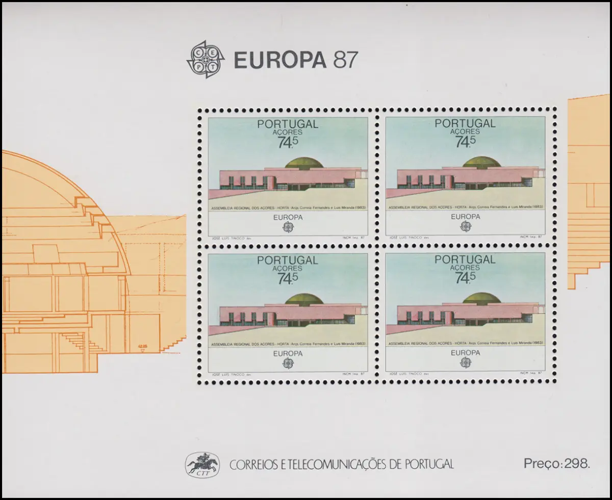 Portugal-Açores Bloc 8 Union européenne CEPT Architecture moderne 1987, ** / MNH