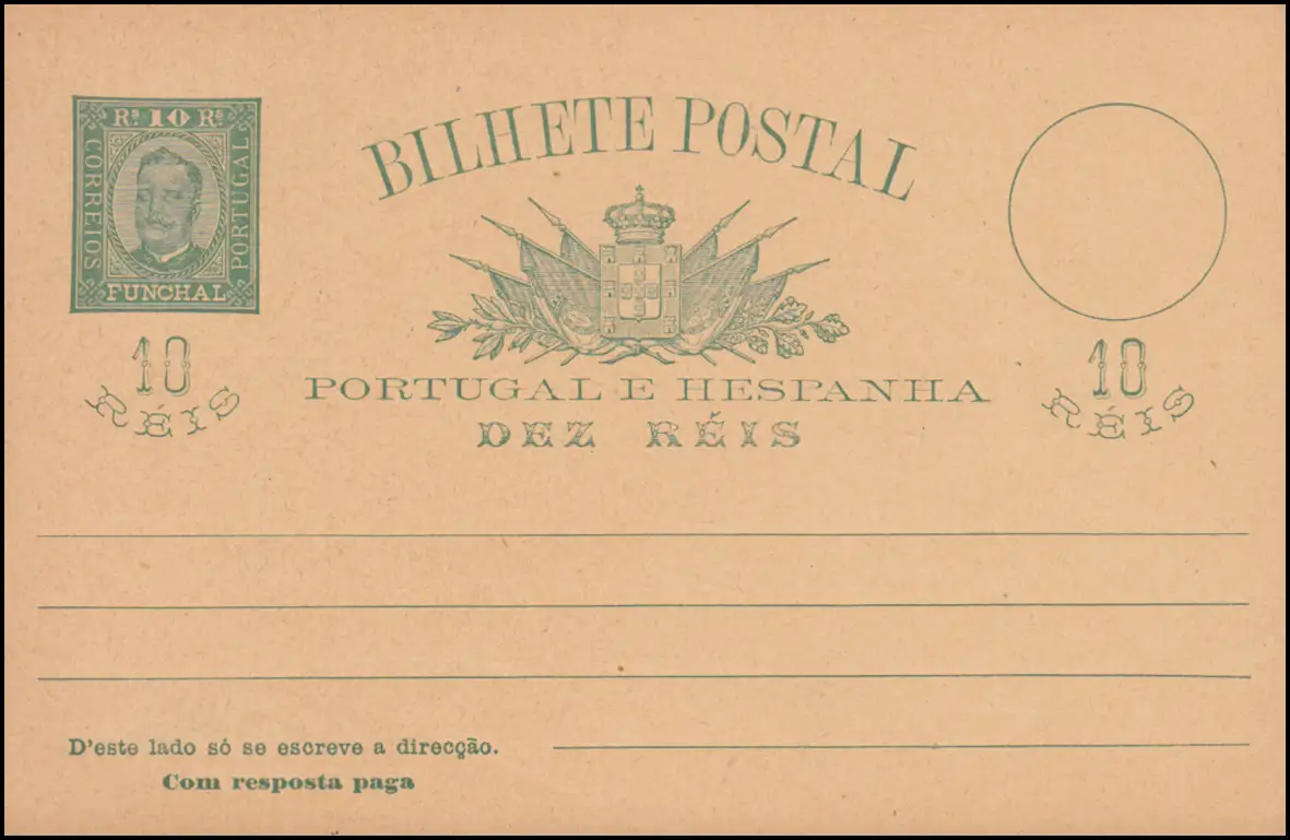 Portugal Madeira Carte postale Roi Carlos Ier Carte double 10/10 R vert, non utilisé
