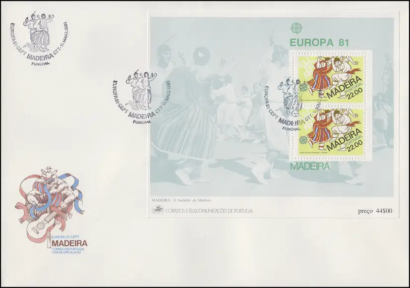Portugal Madère EUROPE / CEPT 1981: Folklore Musique & Danse, bloc sur FDC