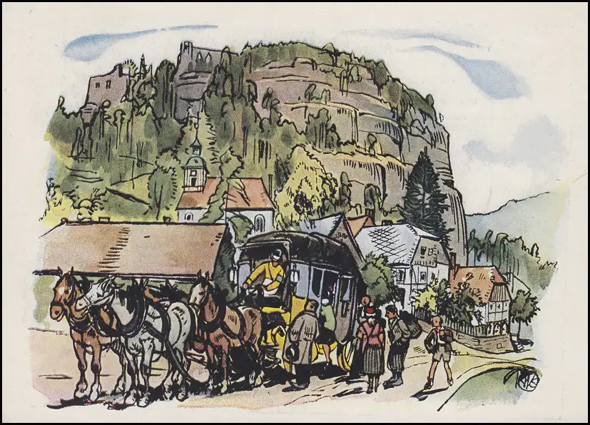 Tampon rouge et carte postale lors de la fête de 700 ans du mur de Zittau, ville frontalière / trajets en diligence de Citta à la station thermale Oybin 1955. N° de catalogue: 464A Examen: original Numéro d'article: milliard032951>p>Remarque: Cet article n'est disponible qu'une fois. Vous recevrez exactement l'élément représenté.