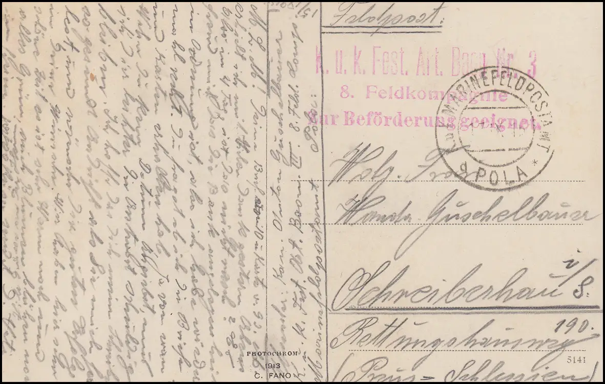 Post Marine Champ Pola 17.9.15 Comp. artillerie forteresse 8 AK fouilles romaines