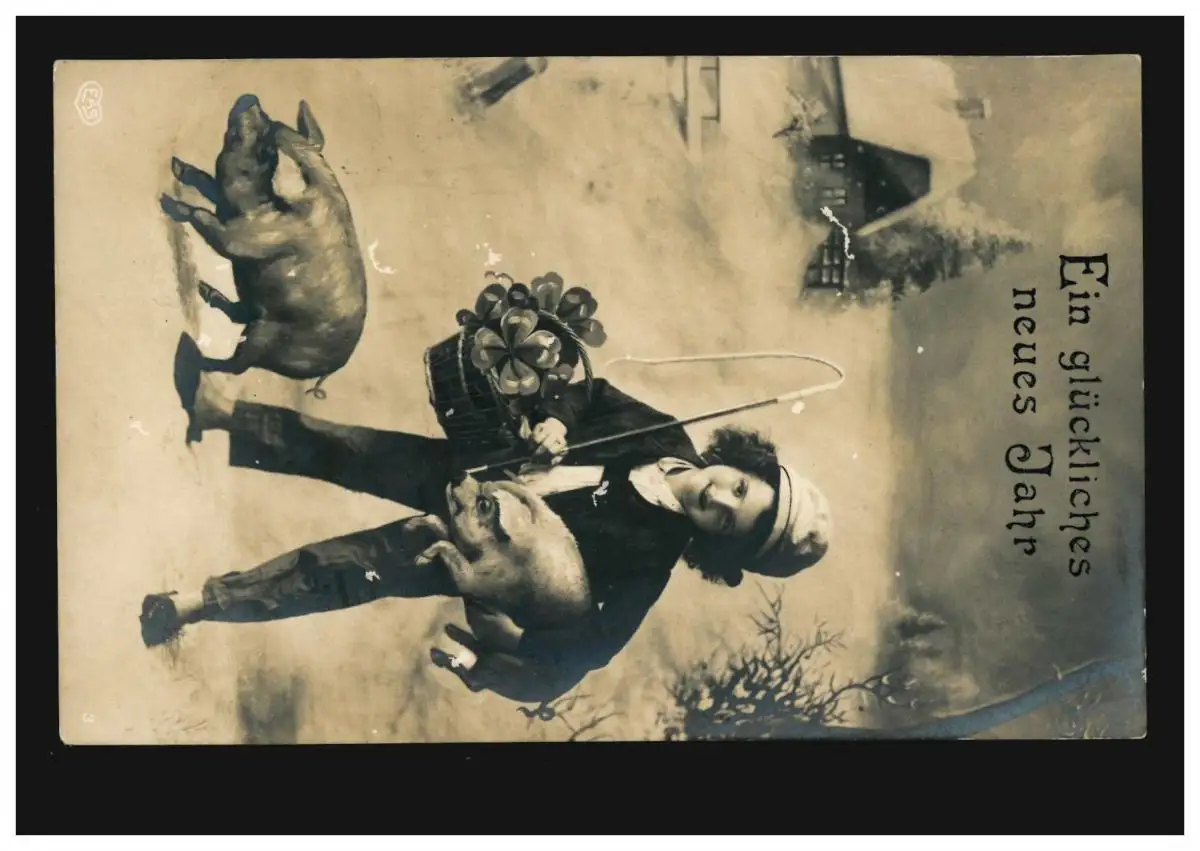 Post-Post OLDENBURG-OSNABRÜCK 2.1.1913 sur les porcs chanceux du Nouvel An-AK