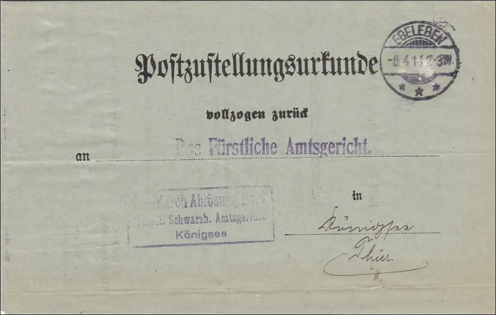 Post Cadeaux de livraison Ebeleben 1911 après Königsee