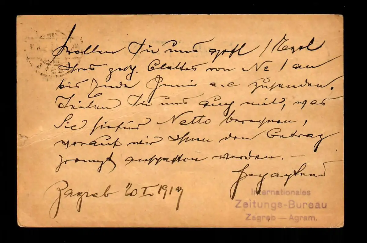 Post card 1919 Zagreb - Agram vers Munich
