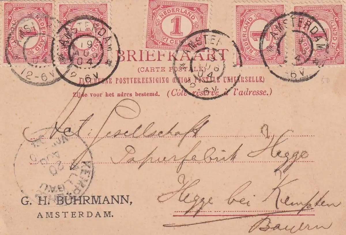 Post card Amsterdam 1904 to Hegge bei Kempten