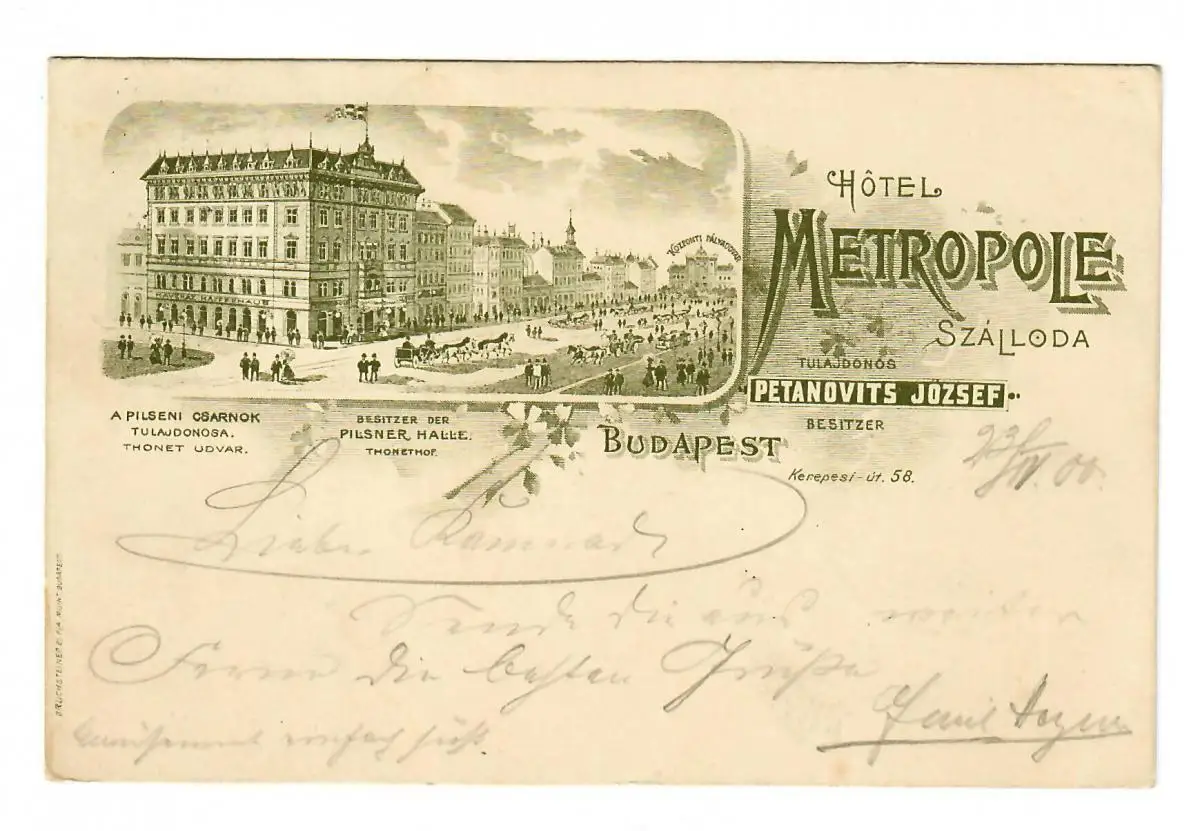 Post card Budapest 1900, Hotel Metropole to Berlin