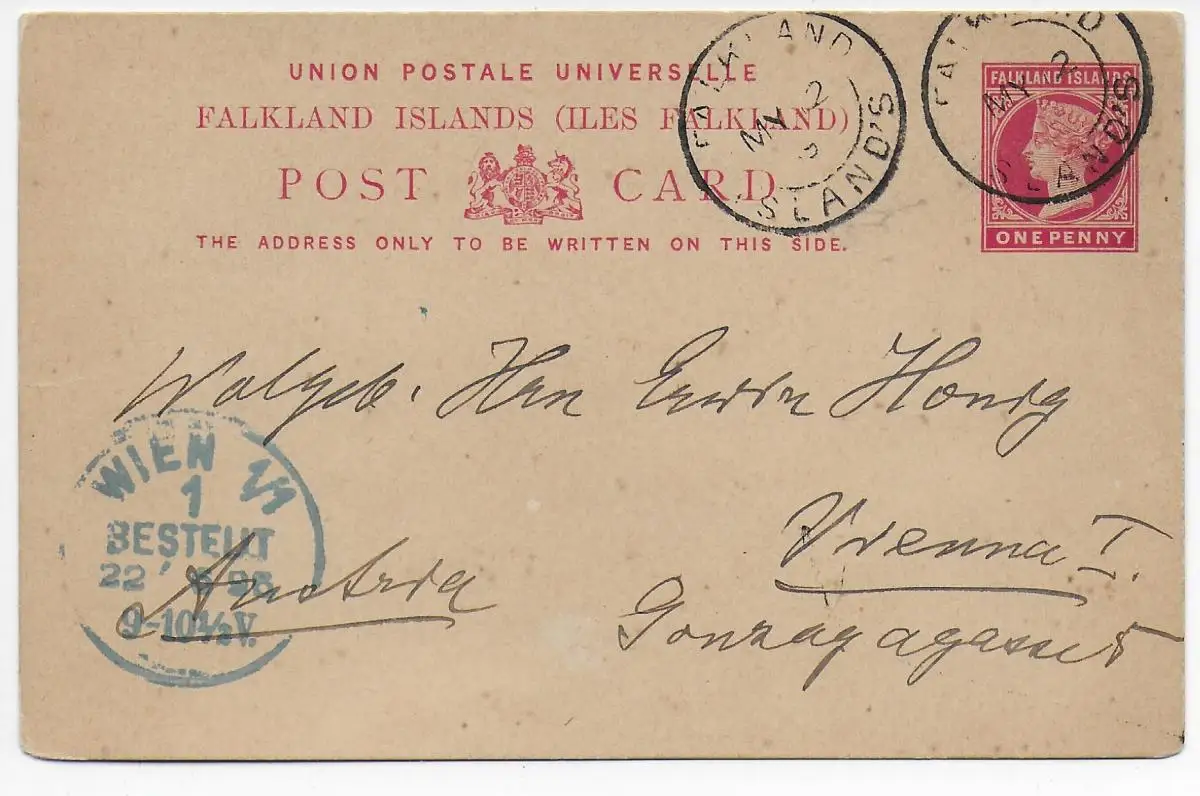 Post card Falkland Islands Port Stanley vers Vienne en 1895