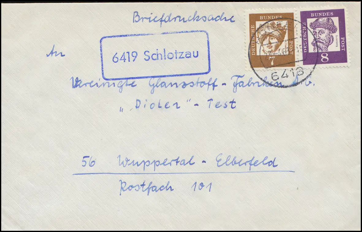 Post de campagne 6419 Schlotzau sur l'impression de lettres HÜNFELD 23.4.1963 vers Wuppertal