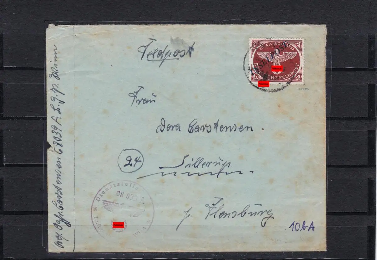 Post de champ MiN° 10A sur lettre après Flensburg 1945, FPN no 08033A