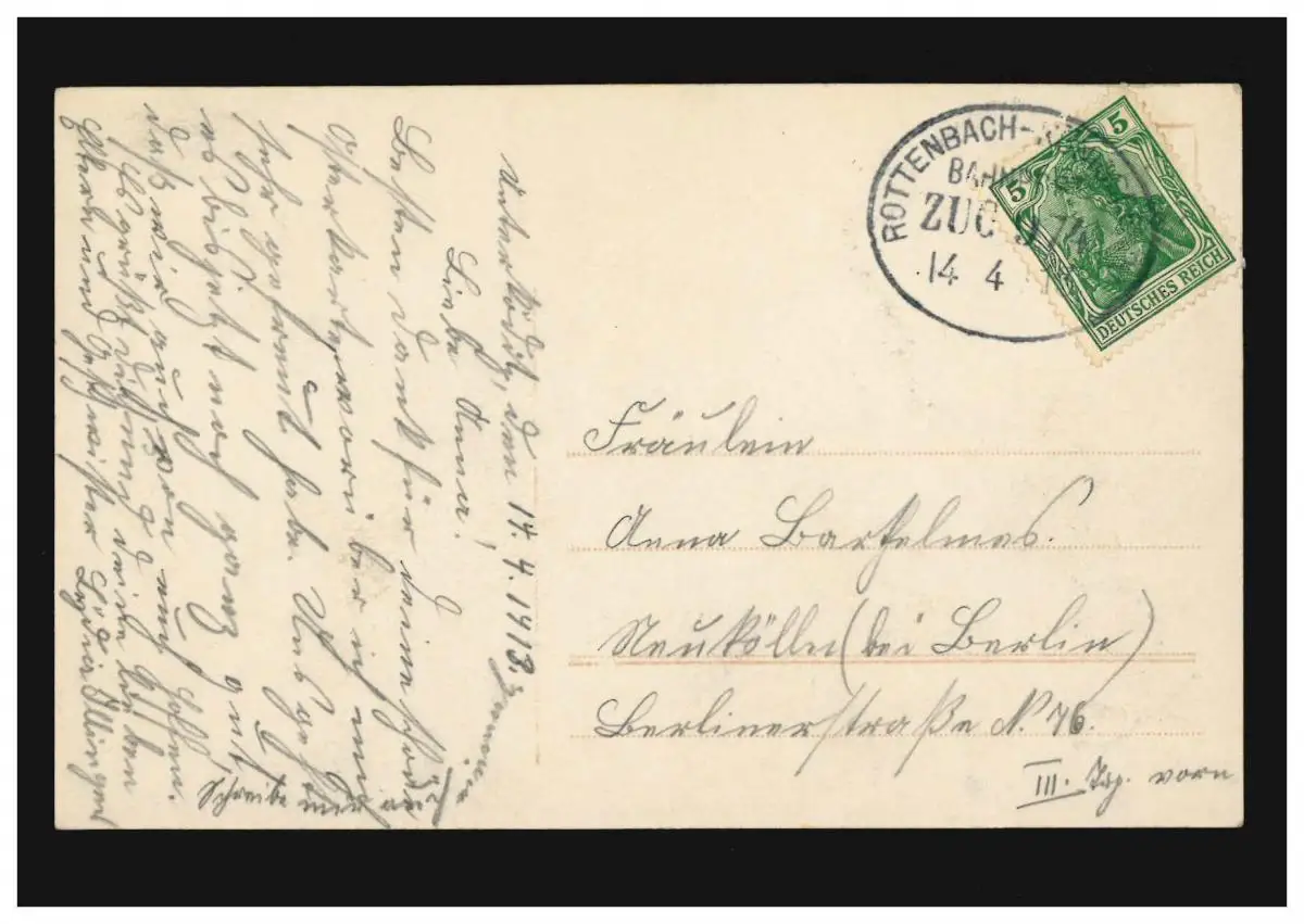 Post de chemin de fer ROTTENBACH - LA LACE (TH) ZUG 974 - 14.4.1913 sur les femmes-AK