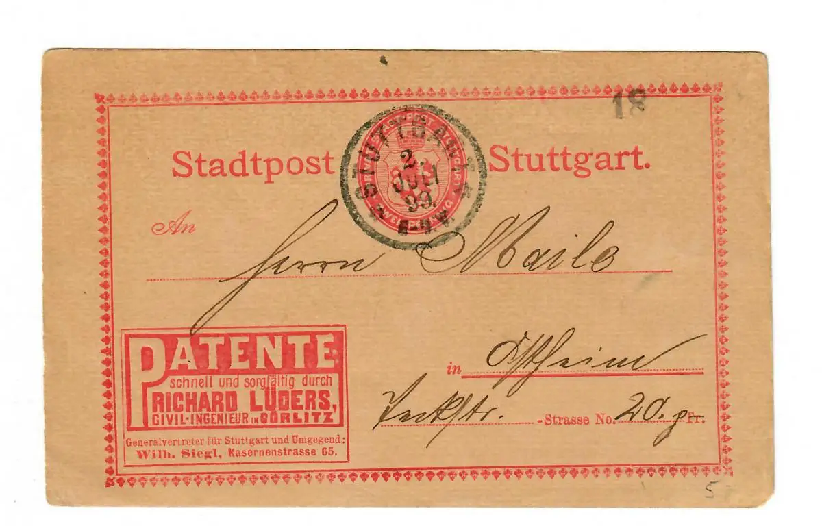 Post de la ville Stuttgart 1899, Brevet - Publicité