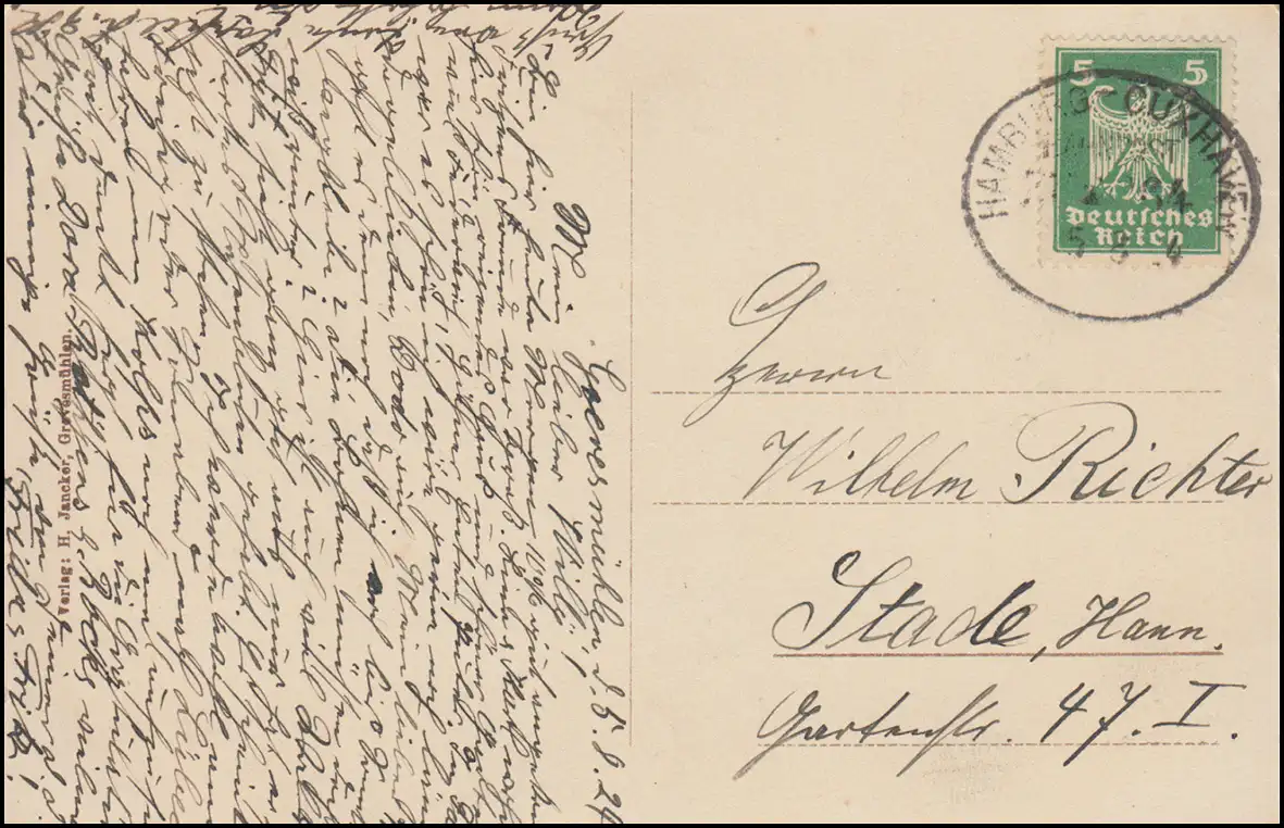 Post de train HAMBURG-CUXHAVEN 5.8.1924 sur AK Grevesmühlen Partie sur le Tannenberg