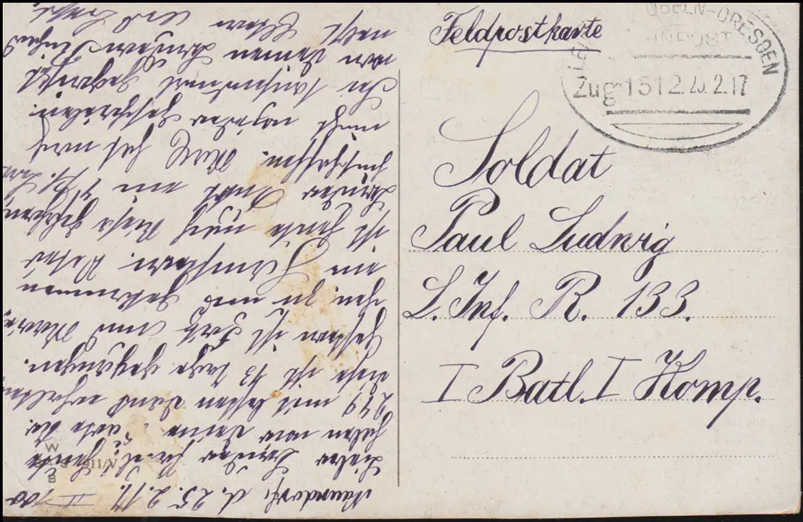 Post de train LEIPZIG - DÖBELN - DRESDE ZUG 1512 - 25.2.1917, Feldpost Carte de vue