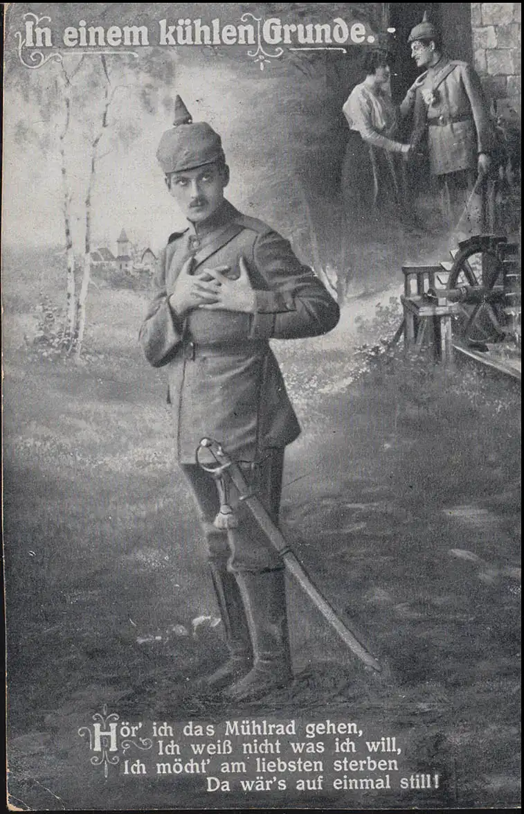 Carte de Propagande: Dans une terre fraîche / poème et soldat avec sabre / scène d'adieu Test: original Référence produit: 00000000023862