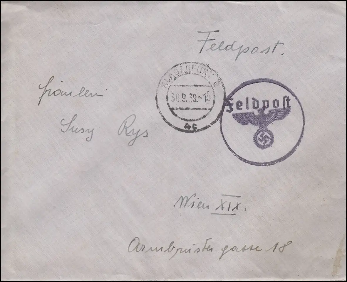 Post post sur le terrain provis. BS Altesse dans le cercle + post-O Lettre KLAGERFURT 30.9.39