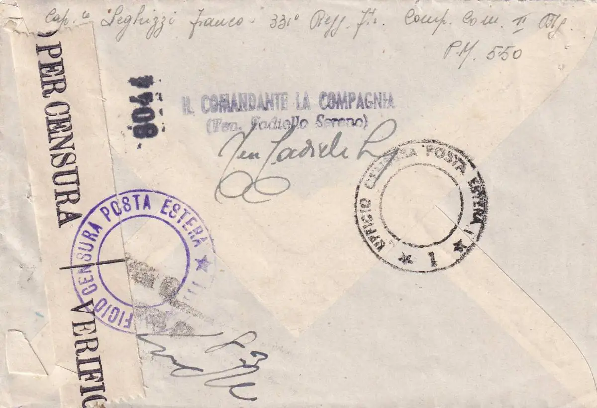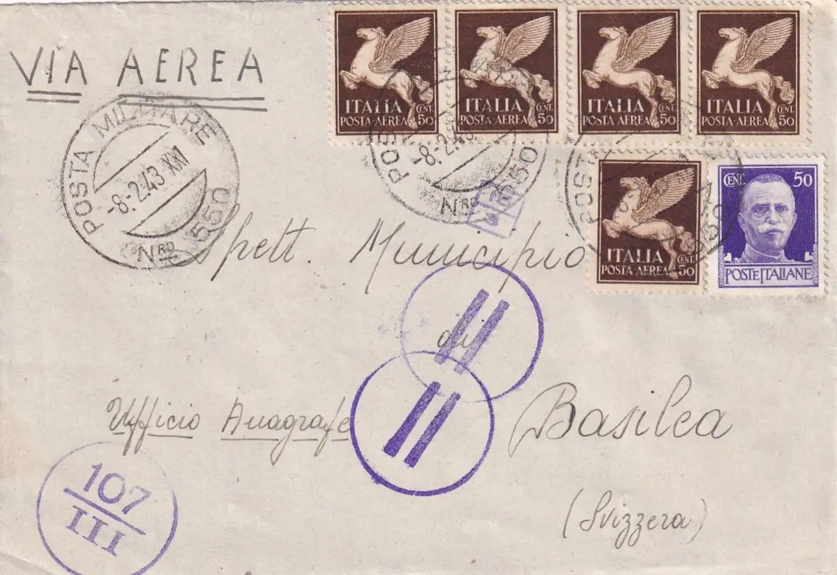 Posta Militare 1943 Noo 550 to Switzerland Basilea