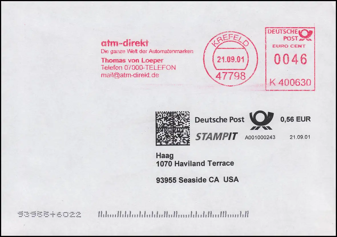 Automatisation postale: STAMIT (Frankature PC) avec AFS atm direct KREFELD 21.9.2001