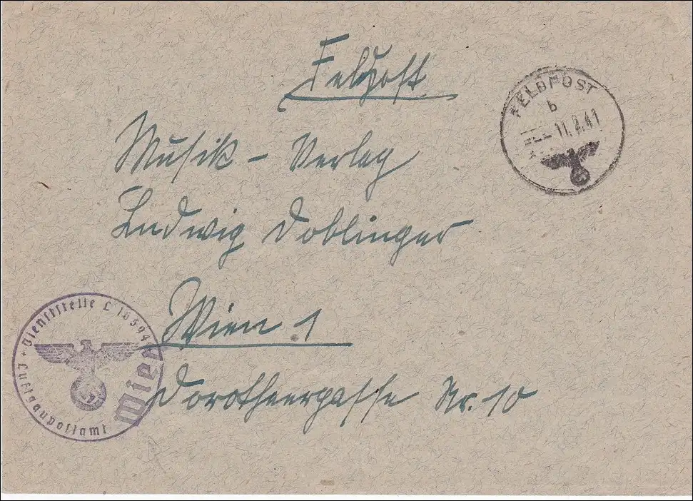 Poste II. Guerre mondiale: Lettre du Bureau du courrier aérien Vienne vers Vienne 1941