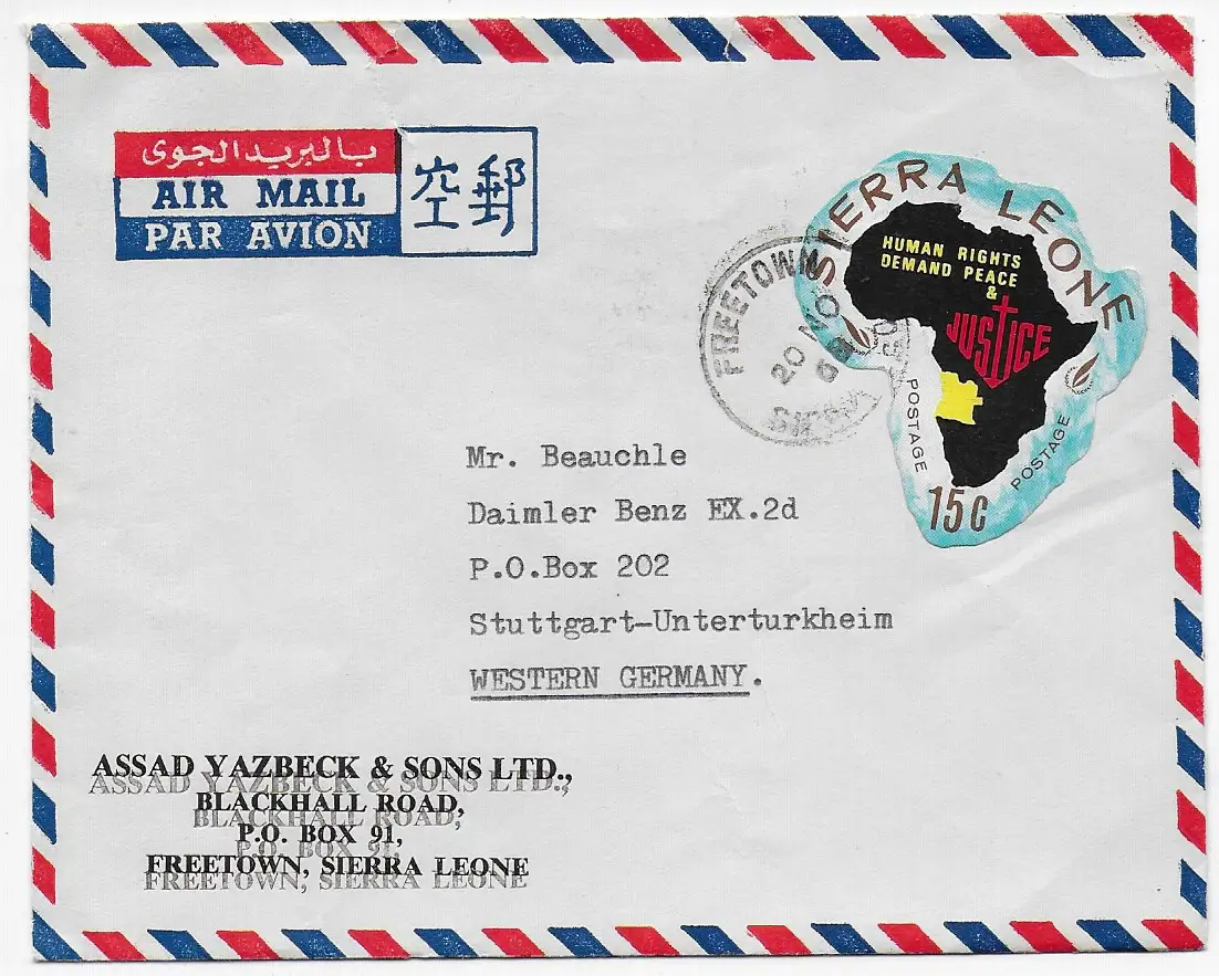 Poste aérien Freetown Sierra Leone vers Stuttgart, 1968, besoins, rare