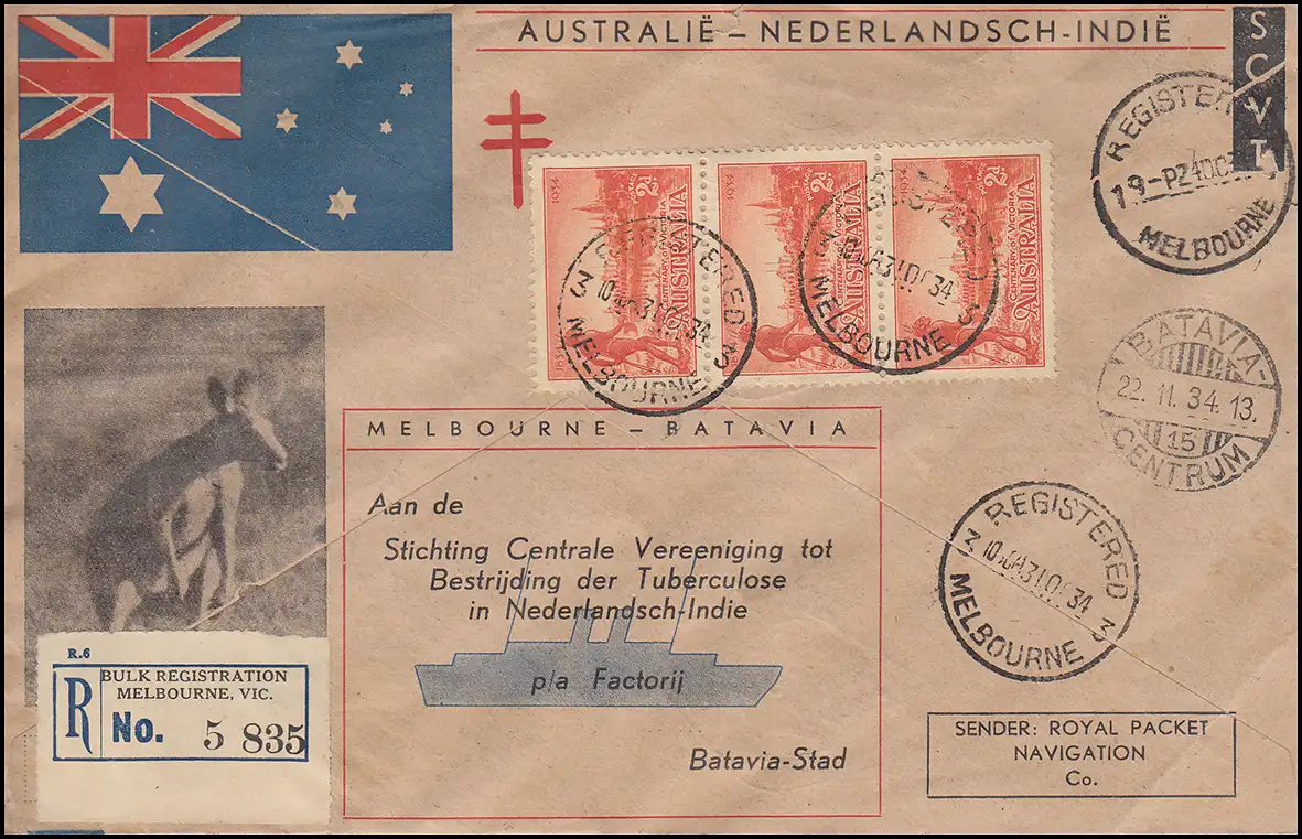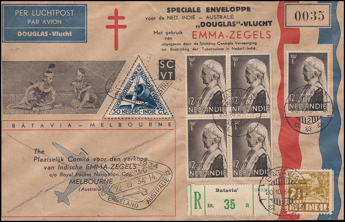 Poste aérien KLM Batavia-Melbourne-Batavia 20.10.34 / 31.10. Emma-R-F. Tuberculose