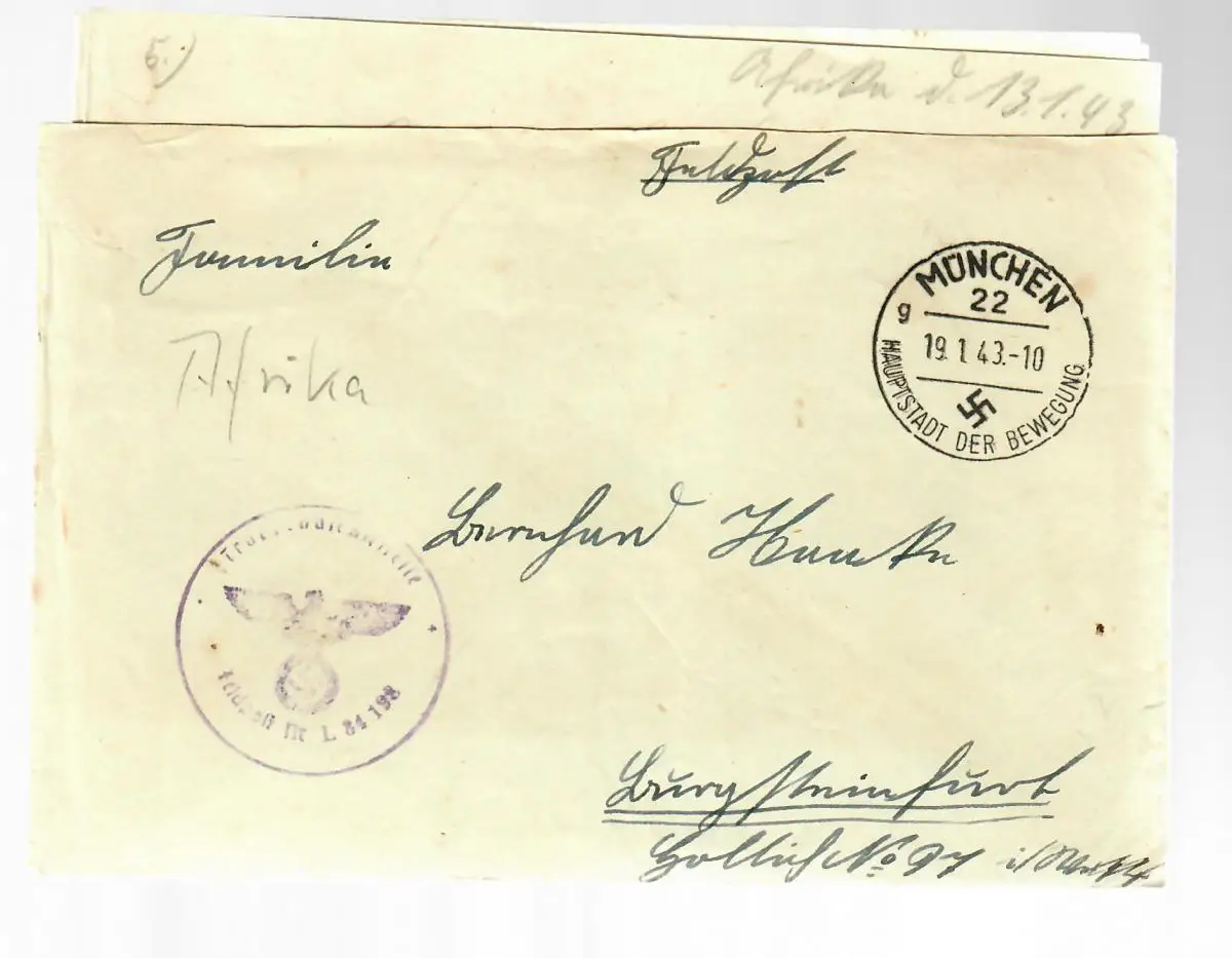 Poste de champ 1943 Munich avec contenu texte Afrique, FPn° L34198