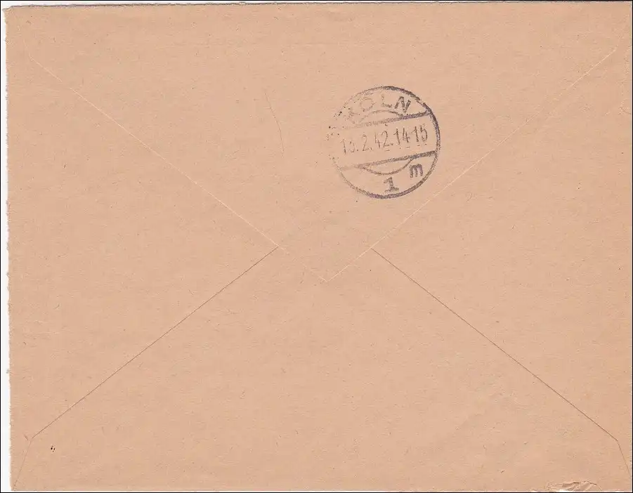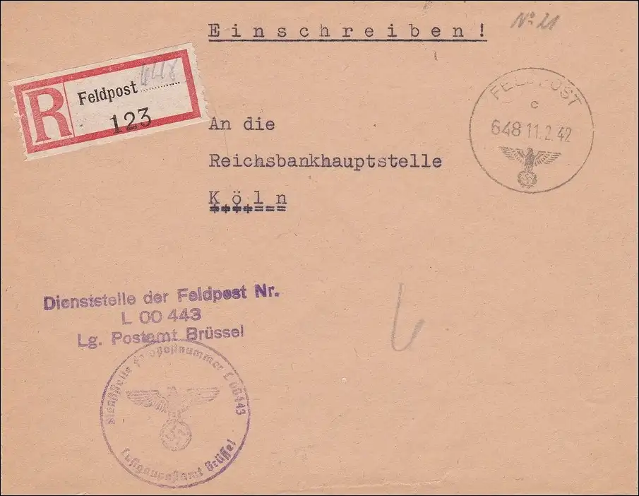 Poste de champ II Guerre mondiale: recommandé en 1942 de Bruxelles à Cologne - Reichsbank