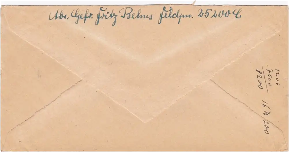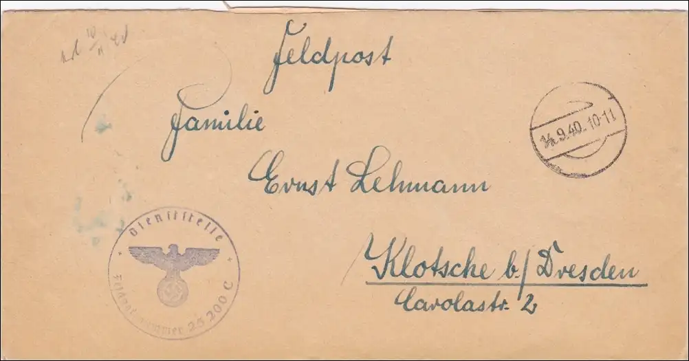 Poste de champ II. WK: FPn° 25 200, cachet silencieux 1940 après Klotsche près de Dresde