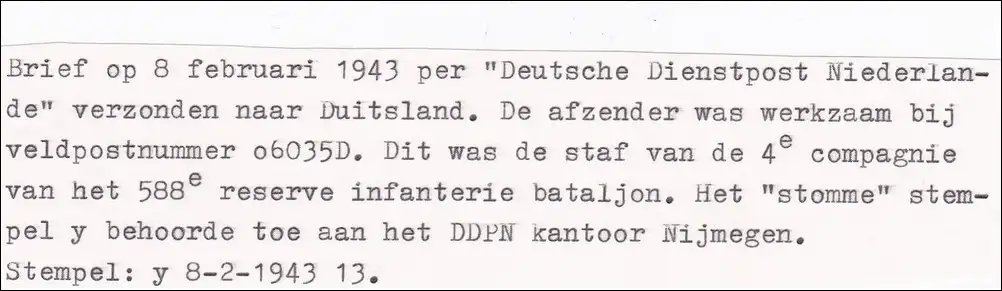 Poste de champ II: WK: Stummer Stamp 1943, FPn° 06035D, Pays-Bas avec contenu