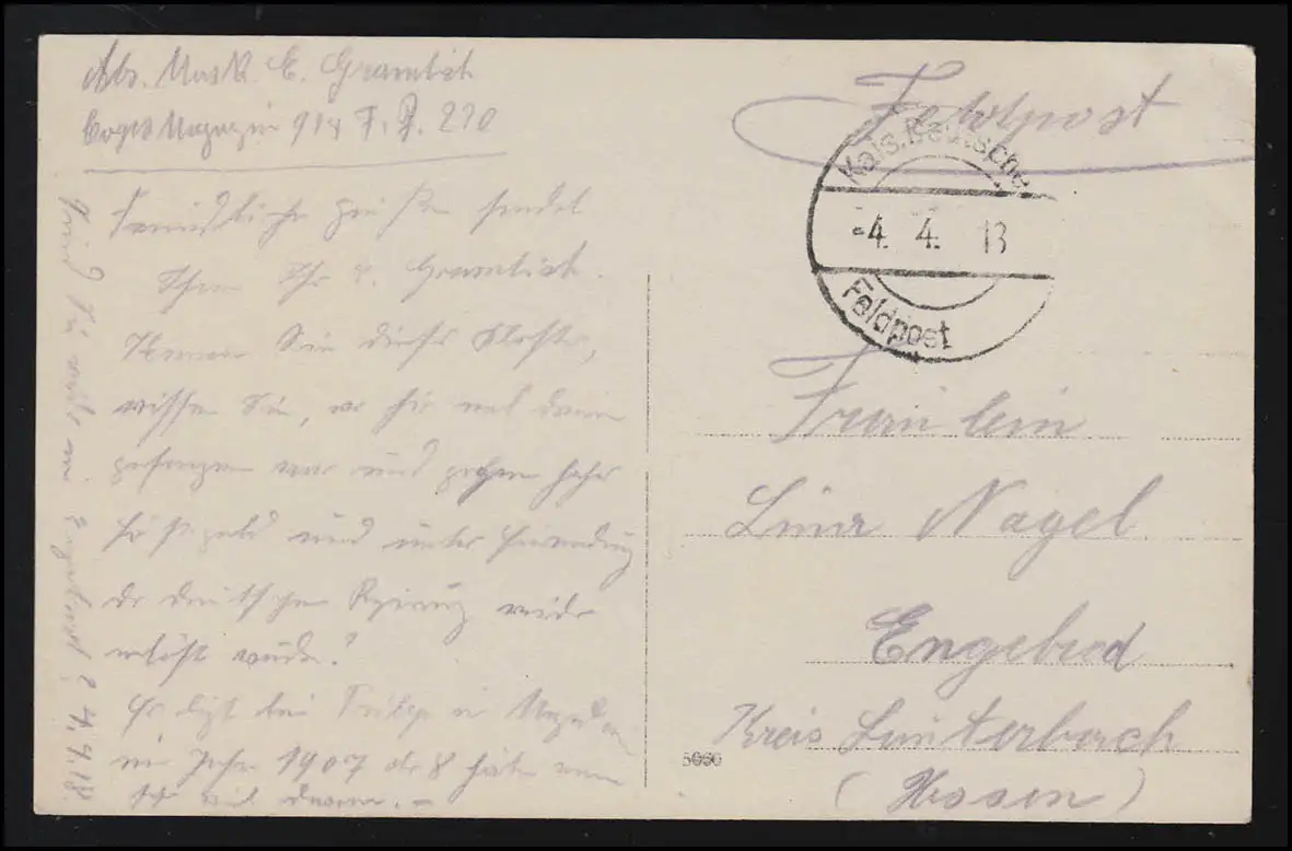 Poste de champ Impérial Deutsche Feldpost 230 - 4.4.18 AK Balkan Monastère sur la montagne