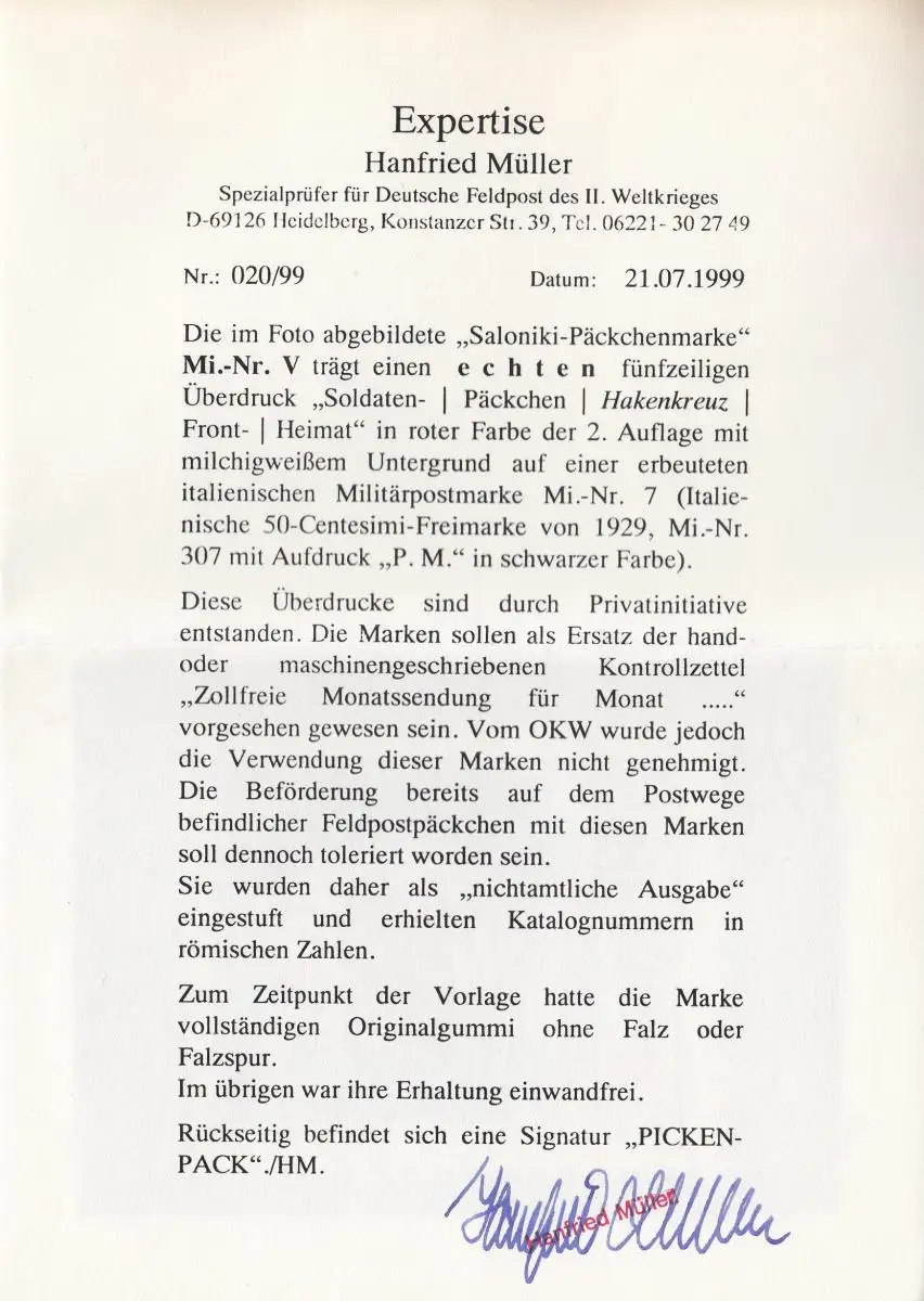 Poste de champ: marque de colis Saloniki, MINR. V, **