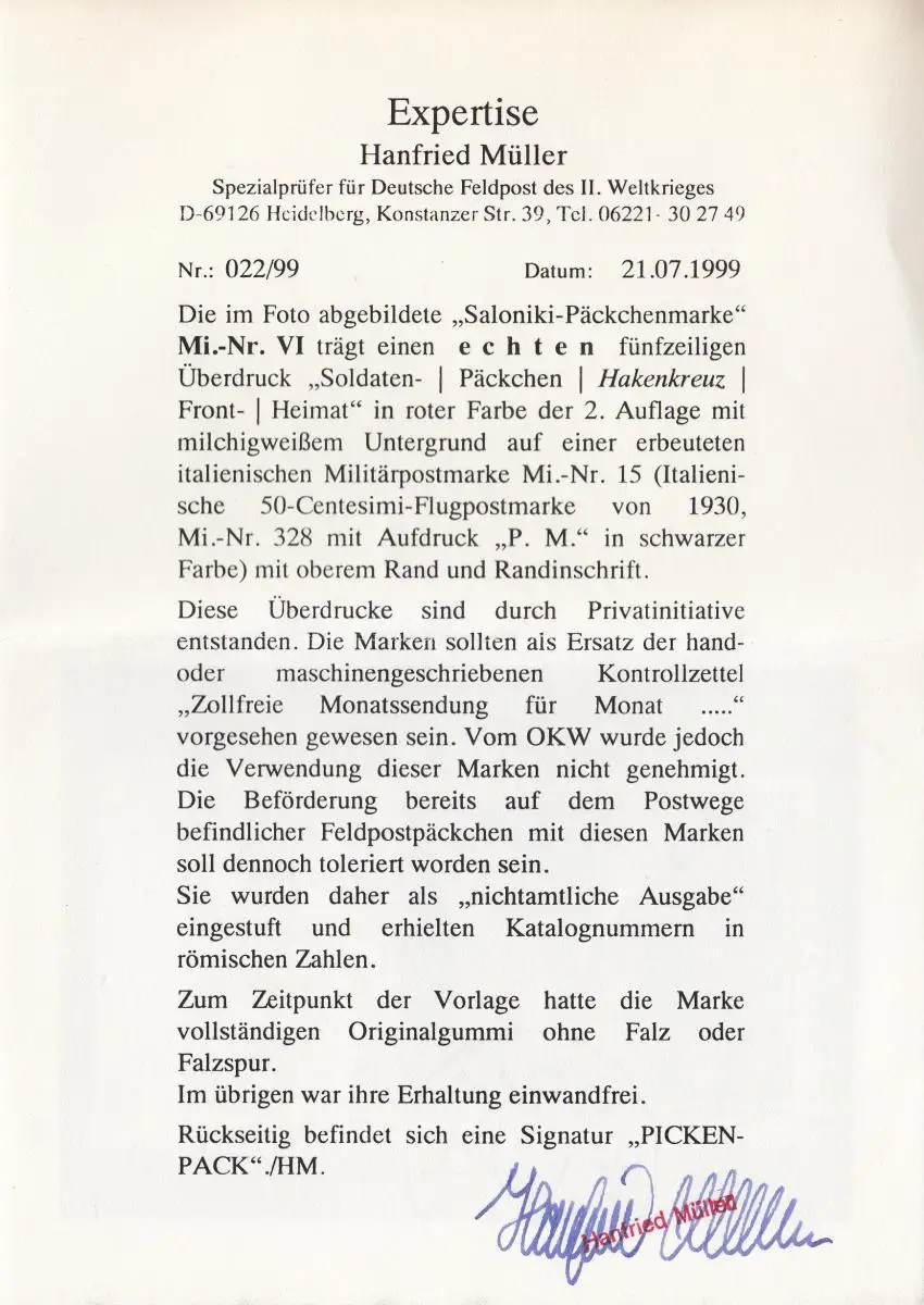 Poste de champ: marque de colis Saloniki, numéro VI, **