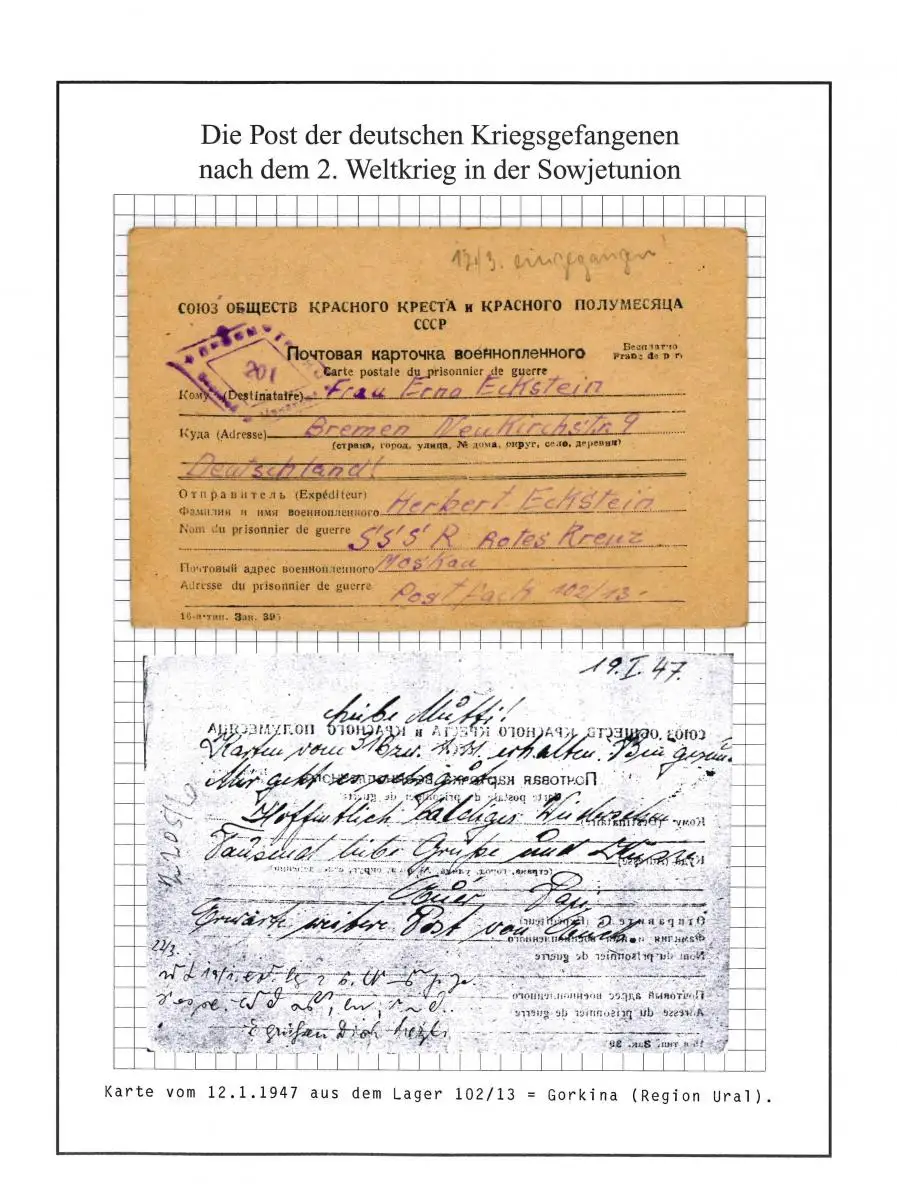 Poste de prisonniers de guerre Camp 102/ 13 Magnitogorsk URSS vers Brême 12.1.1947