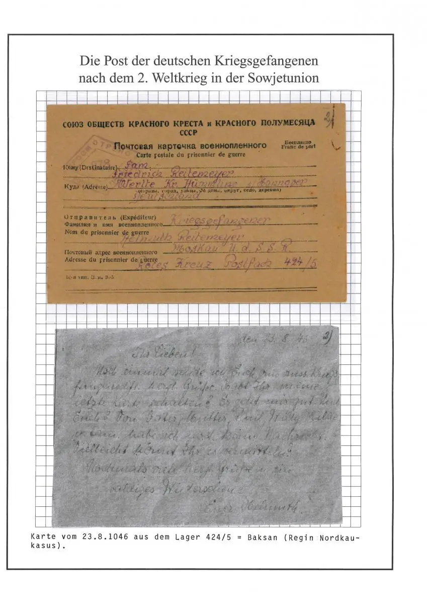 Poste de prisonniers de guerre Camp 424/5 Naltchik / Melitopol URSS vers Werlte23.8.1946
