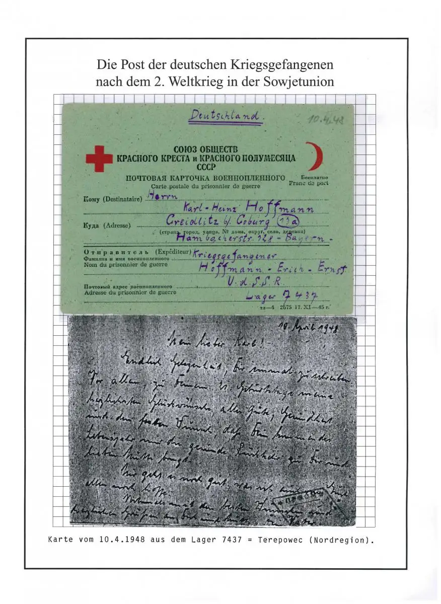 Poste de prisonniers de guerre Camp 7437 Tcherepowez URSS Creidlitz /Coburg 10.4.1948