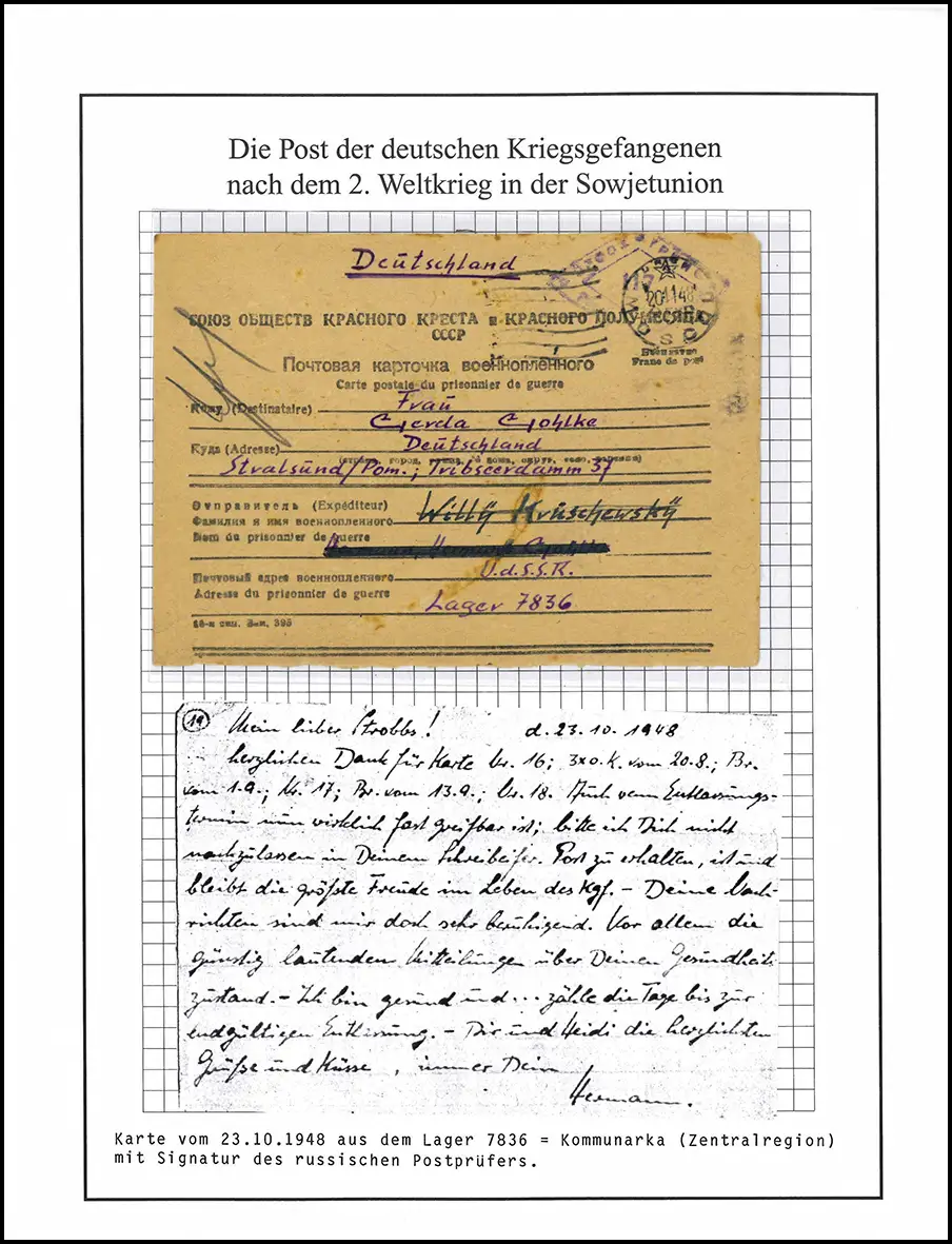 Poste de prisonniers de guerre Camp 7836 Kommunarka URSS vers Stralsund, Moscou 20.11.48