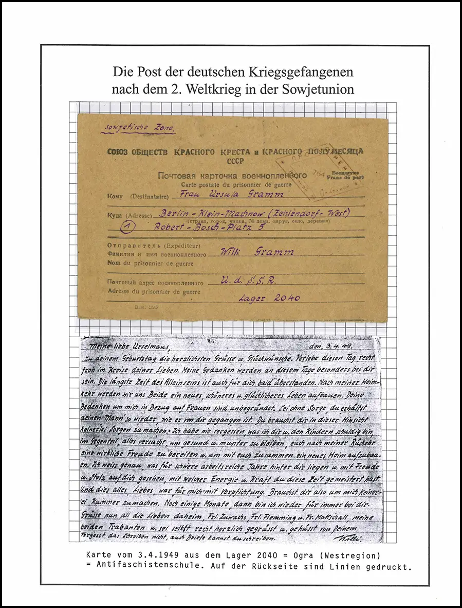 Poste de prisonniers de guerre Carte Entrepôt 2040 Antifa école Ogra URSS + lignes 3.4.1949