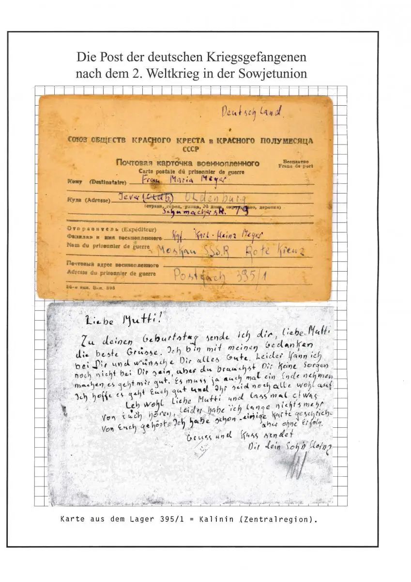 Poste de prisonniers de guerre Carte du camp 395/1 Kalinin Russie vers Jever / Oldenburg