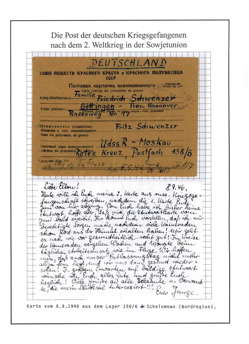 Poste de prisonniers de guerre camp 158/6 Vologda /Schalomovo URSS Göttingen 8.9.1946