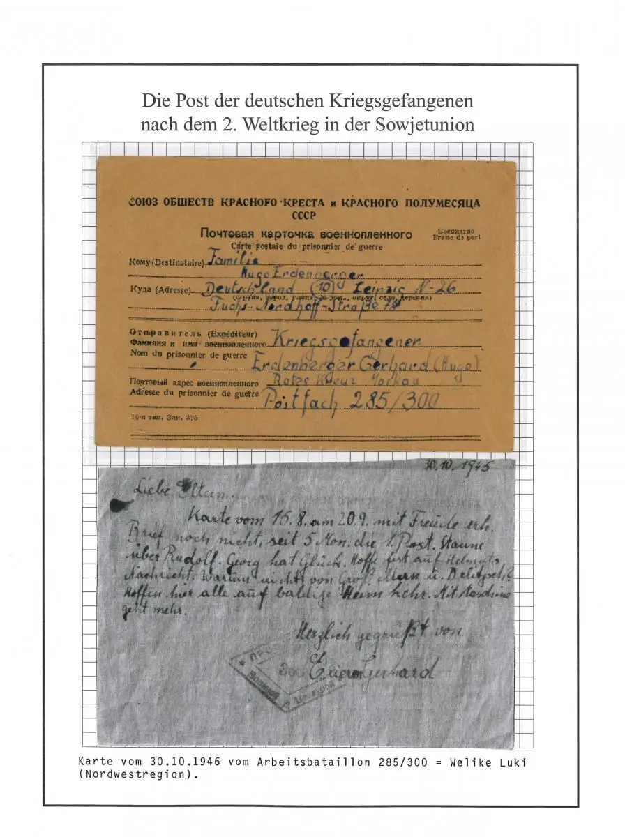 Poste de prisonniers de guerre camp 285/300 Welikie Luki URSS vers Leipzig 30.10.1946