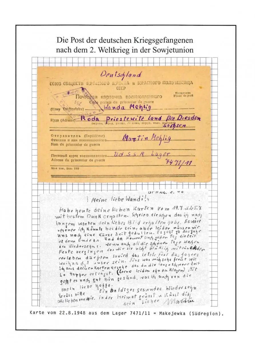 Poste de prisonniers de guerre camp 7471/ 11 Makejevka URSS vers Roda du 22.8.1948