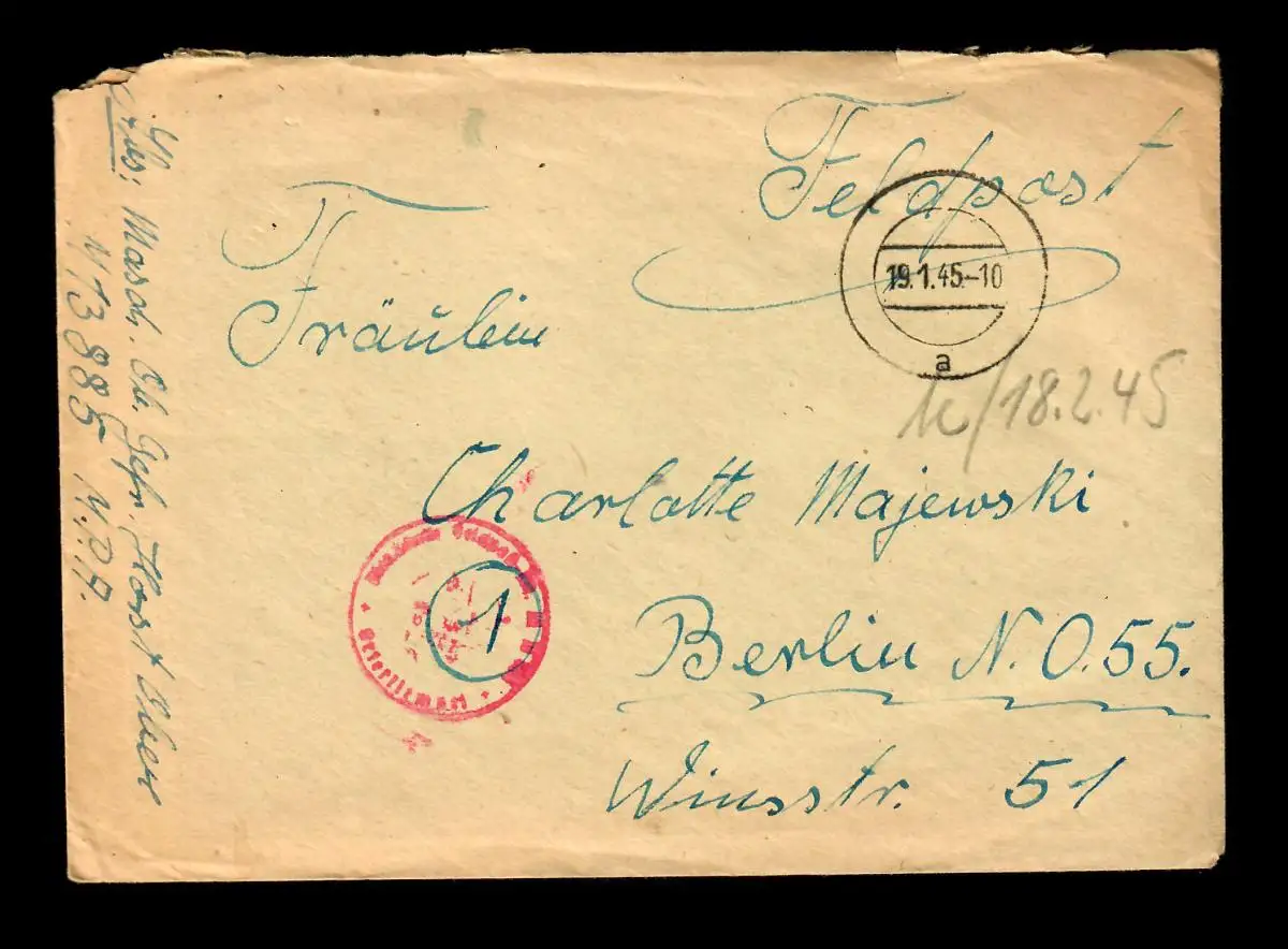 Poste de terrain 19.1.45, Marine M13885 MPA à Berlin avec le contenu de la lettre "An Bord"