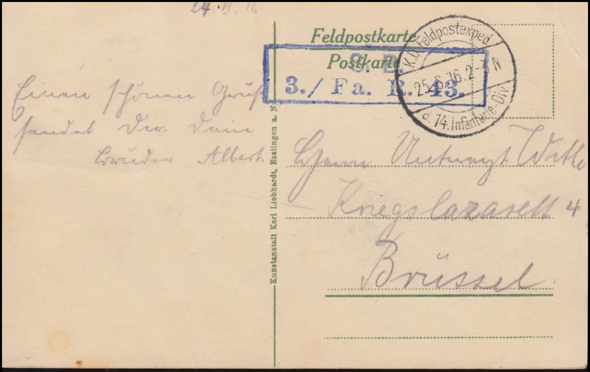 Poste de terrain BS 3 / Fa.R.43 de la 14e édition de l'Inf. 25.6.16 sur AK Sägermühle Vilosse-Sivry
