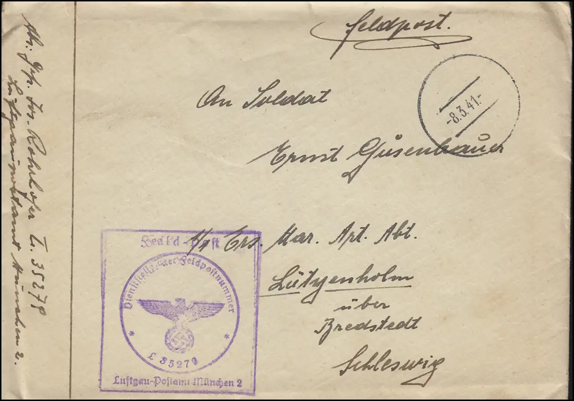 Poste de terrain BS Airgau-Postamt Munich 2 / FP-N° L 35279, lettre cachet de couverture 8.3.41