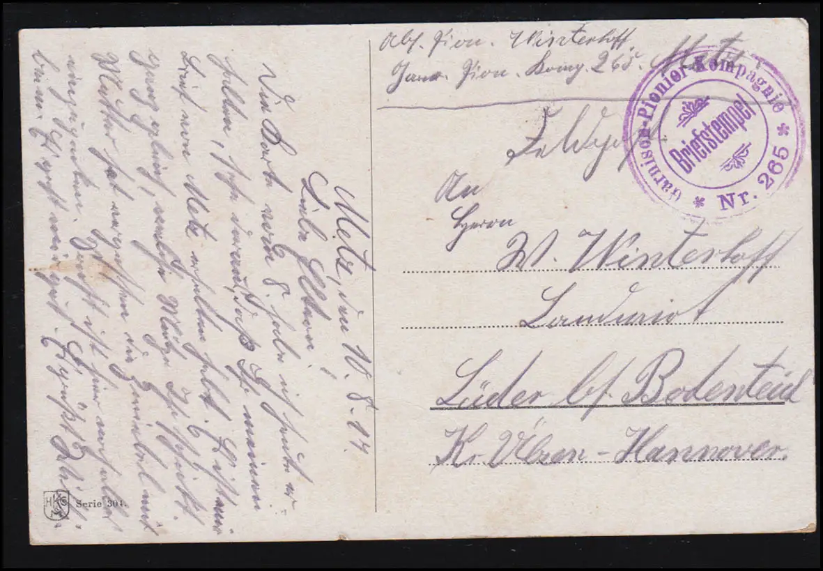 Poste de terrain BS Compagnie de garnison pionnier 265 sur Artiste-AK Dorfidylle, 1917
