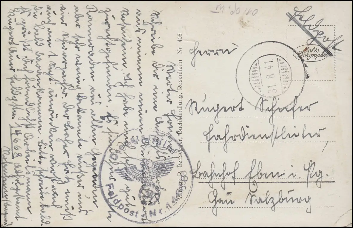 Poste de terrain BS Numéro de poste de champ 14668 sur AK Rosenheim avec cachet de couverture 31.8.1941