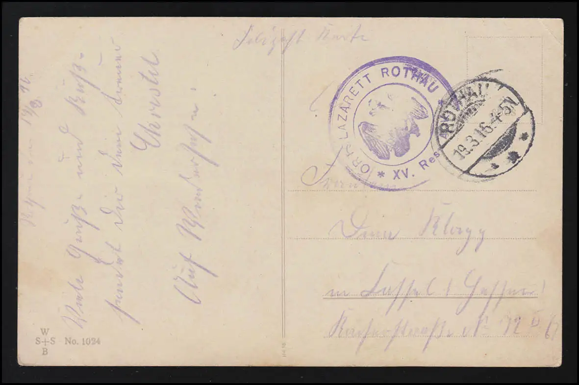 Poste de terrain BS ORTSLAZARETT ROTHAU 19.3.1916 sur AK J'ai que ton amour