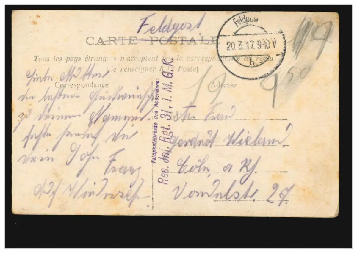 Poste de terrain BS Res. Inf. Rgt. 31 1. Compagnie de mitrailleuse 20.3.17, AK Confiance
