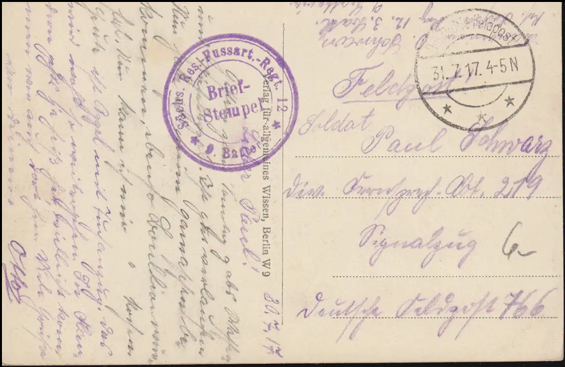 Poste de terrain B.S. Saxon Res.-Fussartillerie-Regt 12 - 31.7.17 sur AK Longuyon