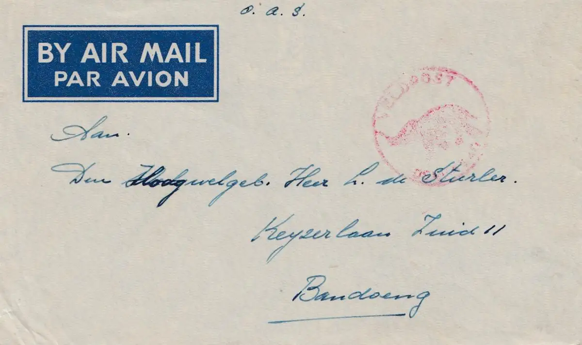 Poste de terrain Bali vers Bandoeng - Poste aérien avec éléphant tamponné