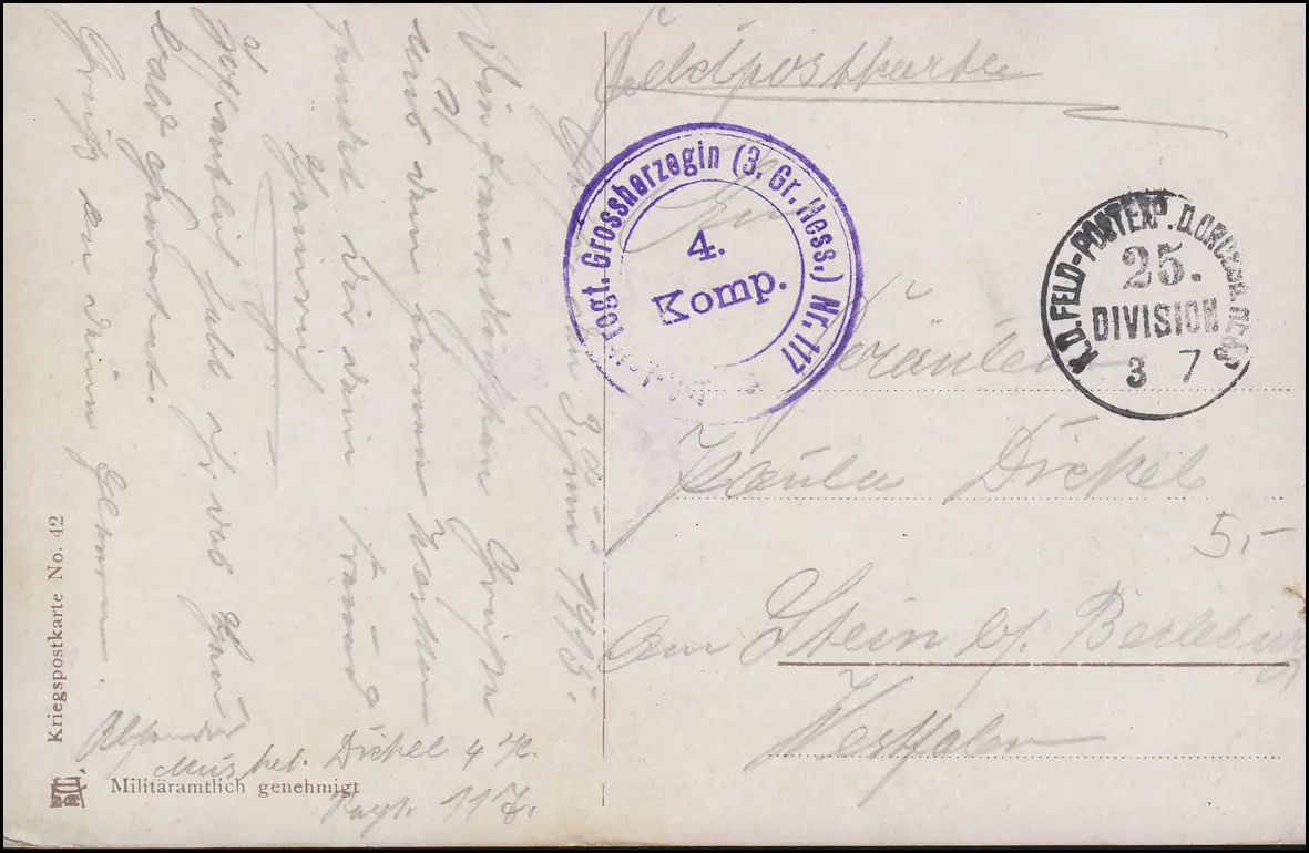 Carte postale de guerre numéro 42 Examen: original Numéro d'article: 00000000019959